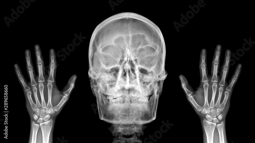 Film X Ray Radiograph Show Human Anatomy Of Skull Bone And
