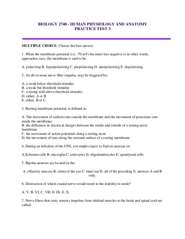 So lets take it right now. Here youll find some interesting and knowledgeable questions about anatomy and physiology that will improve your knowledge. Read these instructions before taking this practice exam.