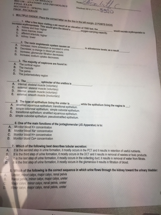 Solved Final Exam Anatomy And Physiology Ii B102312 Sp