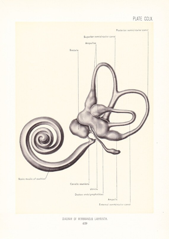 Anatomy 1899 Human Anatomy Print Membranous Labyrinth Vintage Antique Medical Anatomy Art Illustration For Doctor Hospital Office