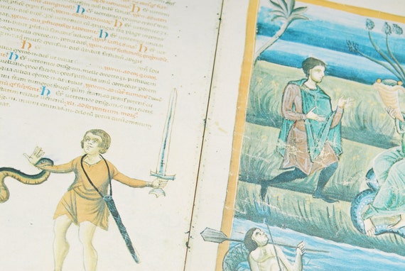 Vintage Medicina Antiqua Codex Vindobonensis Facsimile Wood Wall Hanging Colorful Illustrations Anatomy Medicine Decoration 1970s Austria