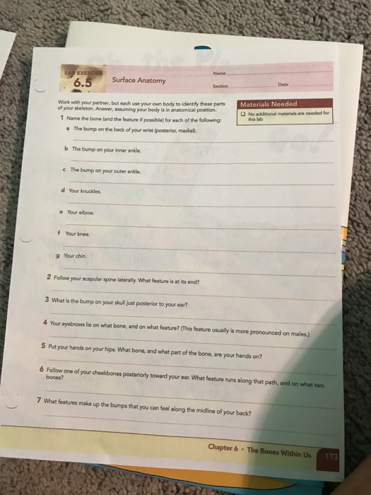 Solved 6 5 Surface Anatomy Work With Your Partner But Ea