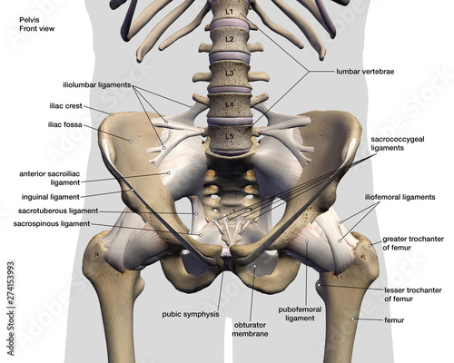 Pelvic And Hip Bones And Ligaments Labeled Front View On