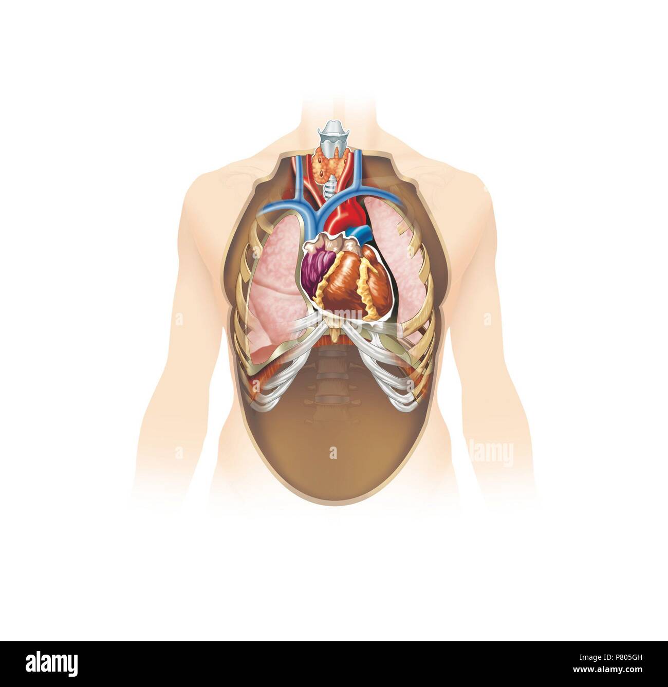 Heart Position Anatomy Man Isolated Posterior View Stock