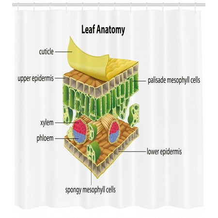 Educational Shower Curtain Anatomy Of A Leaf Names Of The Microscopic Parts Spongy Stoma Epidermis Layers Fabric Bathroom Set With Hooks 69w X 75l