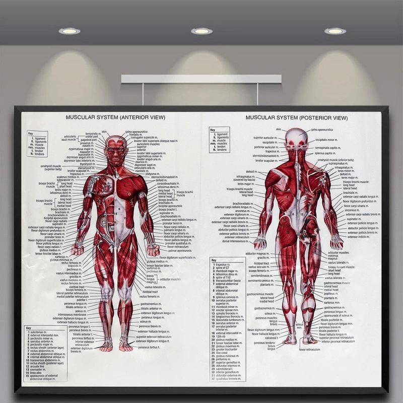 Muscles Male Poster Muscular System Anatomical Chart 2 Views