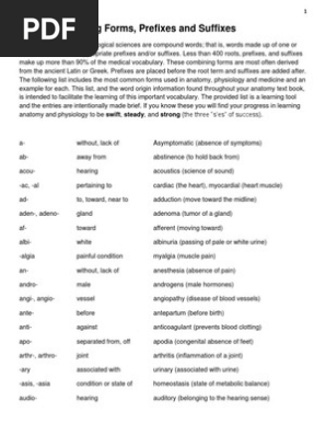 Anatomy Roots Prefixes And Suffixes