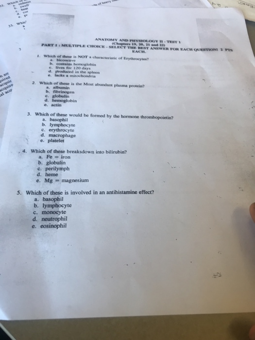 Solved 33 Whhe Anatomy And Physiology I Test Chapters 19