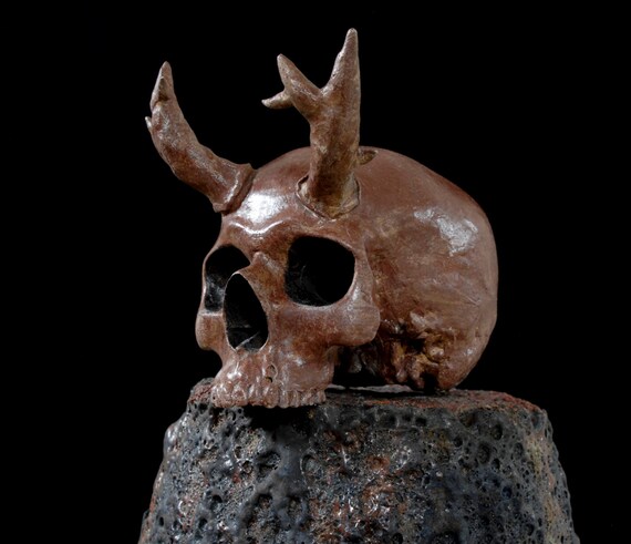 Skull Antlers Deer Antlers Aluminum Halloween Ooak Cast Metal Anatomy Memento Mori Horns Horned Skull