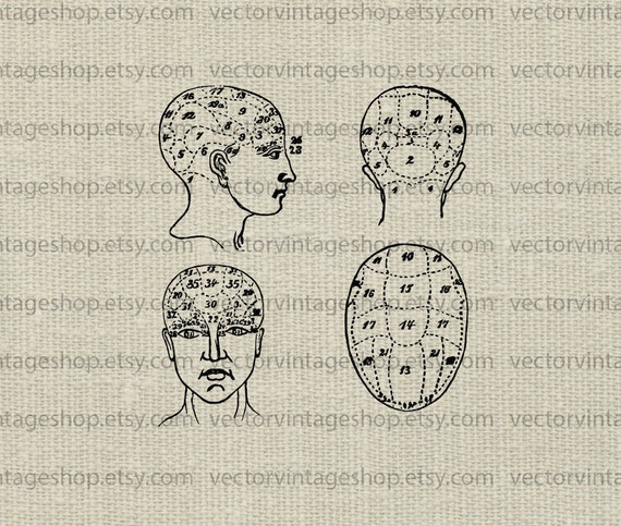 Phrenology Vector Clipart Human Head Anatomy Antique Medical Science Victorian Illustration Occult Instant Download Commercial Use Web1698j