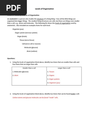 Levels Of Organization Answers Pdf Organ Anatomy Anatomy