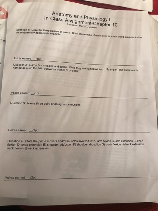 Solved Anatomy And Physiology In Class Assignment Chapter