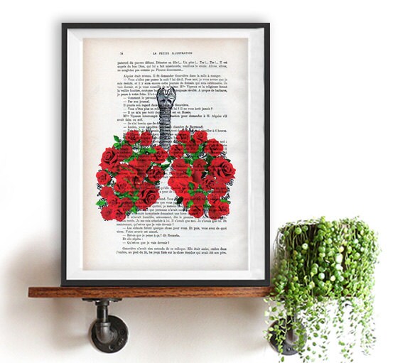 Flower Rose Lungs Anatomy Print On 1900 Vintage Floral Page Doctor Gift Anatomy Illustration Human Anatomy Art Science Drawing Love