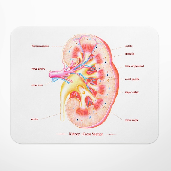 Kidney Anatomy Art Mouse Mat Mouse Pad Gift For Doctor Science Gift Nurse Gift Medical Art Illustration Nursing Student Renal Artery