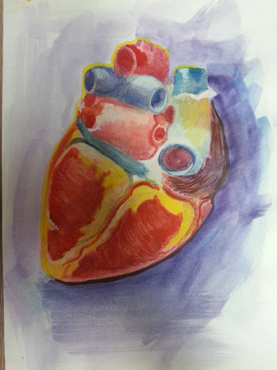 Watercolor Study Of The Posterior Heart Anatomy Heart Illustration Sketch To Study Vibrant Color Of Tissue 8 5 X 11 Posterior Heart
